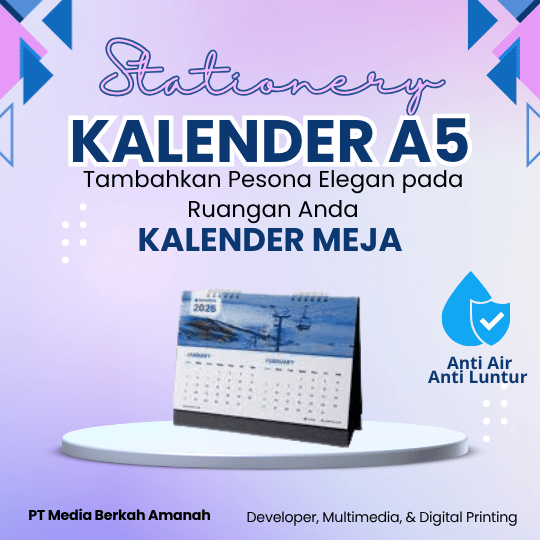 - Kalender Meja yang wajib ada di atas meja kerja, selain itu kalender juga bisa di buat custom dengan design dan photo yang kita inginkan ataupun untuk promosi perusahaan.